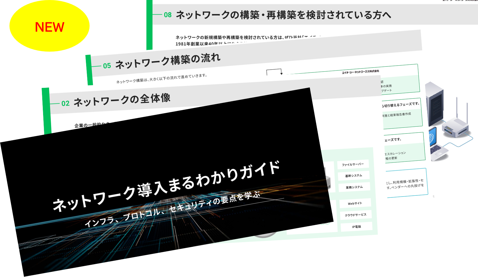 これからネットワークを導入したい方はもちろん、既存環境の見直しや再構築を検討している方にも役立つ内容を1冊に凝縮。自社に最適なネットワーク整備の第一歩として、ぜひご活用ください。
